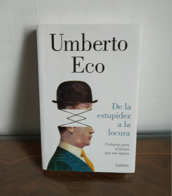 “De la estupidez a la locura recoge una serie de artículos de prensa, publicados a lo largo de quince años, que tratan sobre los temas que más interesaban o preocupaban a Umberto Eco y que él seleccionó personalmente poco antes de fallecer. La lectura de estas piezas se convierte en un placer que invita a los lectores a interrogarse sobre el mundo en el que vivimos.